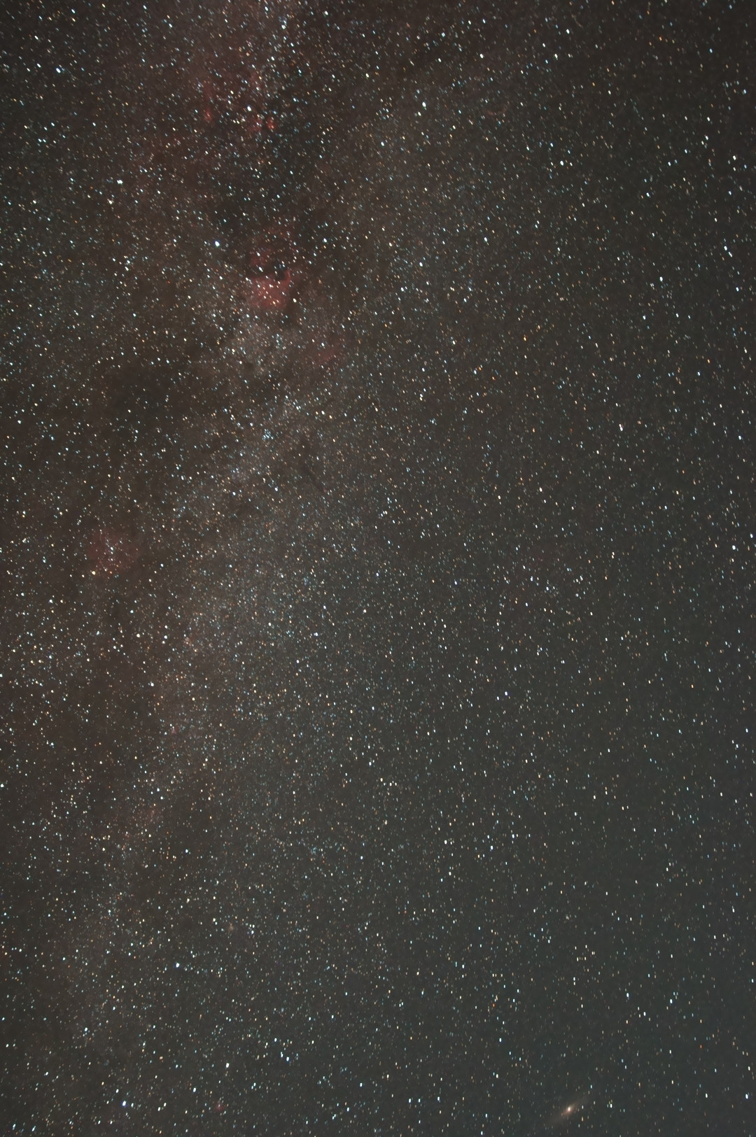 画面右下にアンドロメダ銀河 上のほうに北アメリカ星雲が入っています 8月に富士山に登った際に考えなしに適当に撮ったら入っていました NEX-5N+LPS-P2+24ZA で撮りました