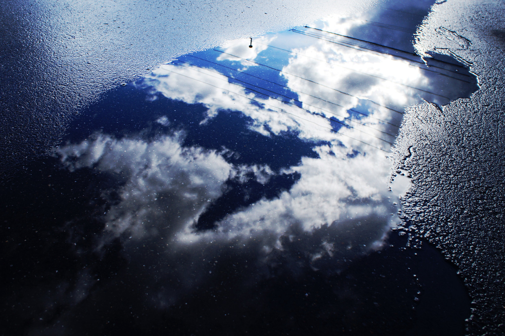 う~ん・・・。 電線が邪魔。 でも、ここ(職場前)の水溜り好きなんだよな~。