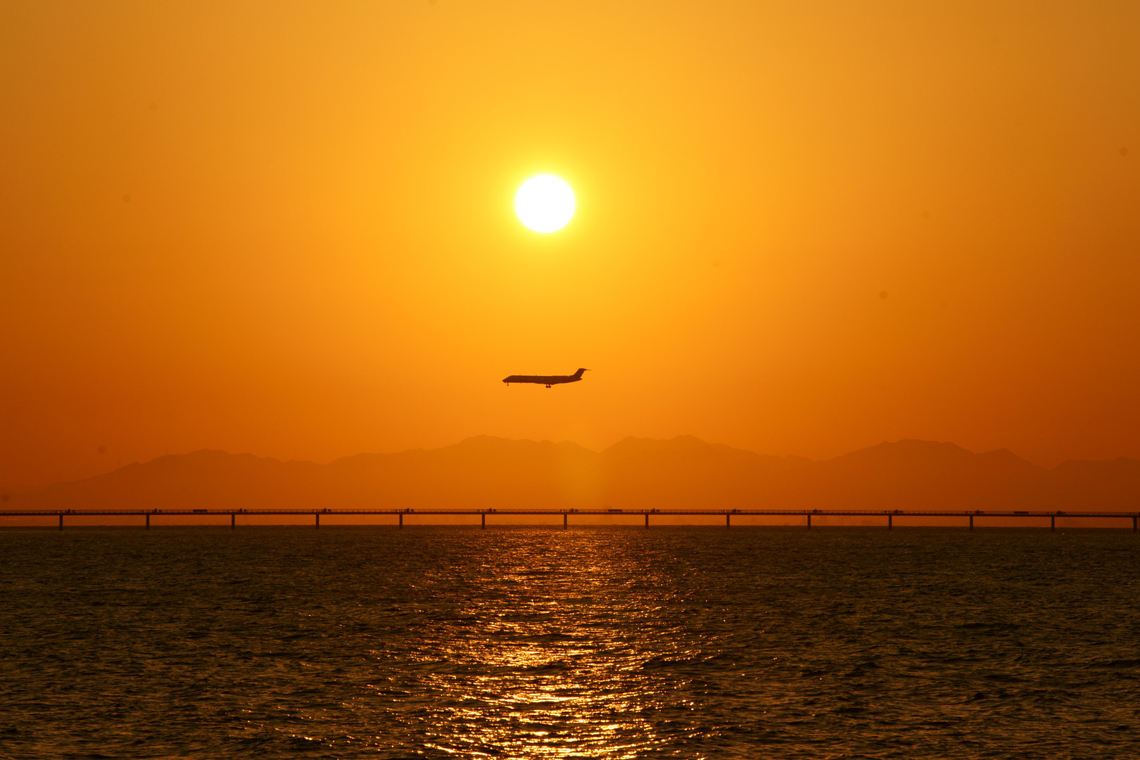 セントレアの対岸からみた着陸風景です。日の丸構図もこんな場合は許されるかなと…