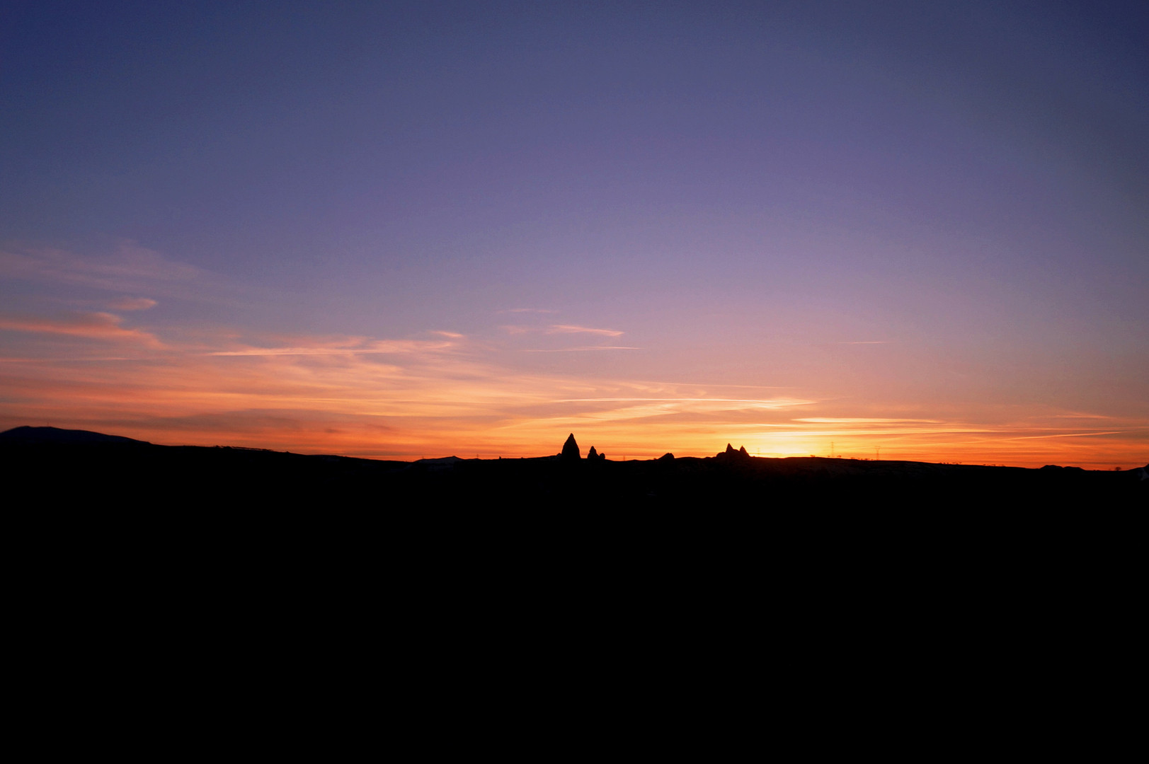 トルコカッパドキアにて.夕日で浮かび上がる奇岩群のシルエットがこれまた美しいです.