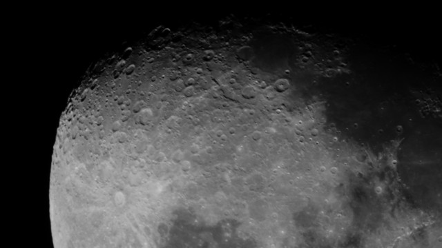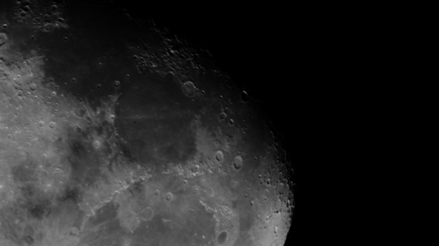 今日の月はまだ丸みを帯びた欠け方です。 クレーターがかっこいい。