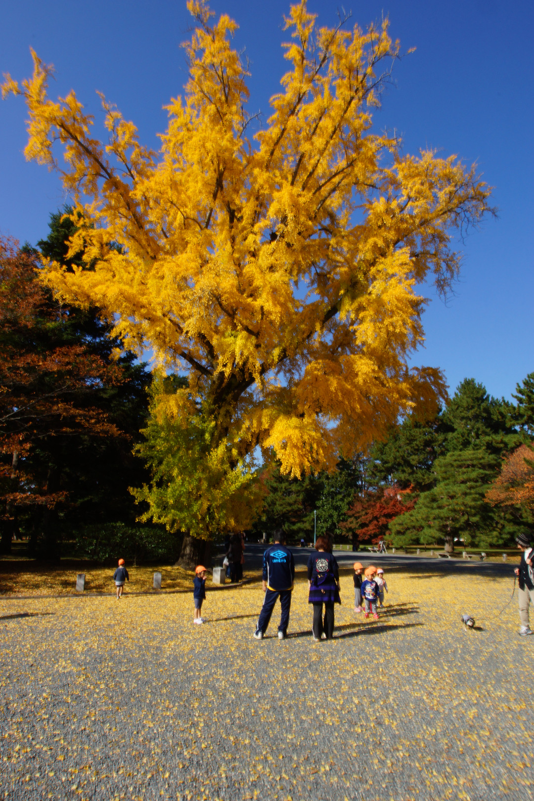 晴天の秋の日 保育園児子犬ずれの婦人 ゆく秋を謳歌している。