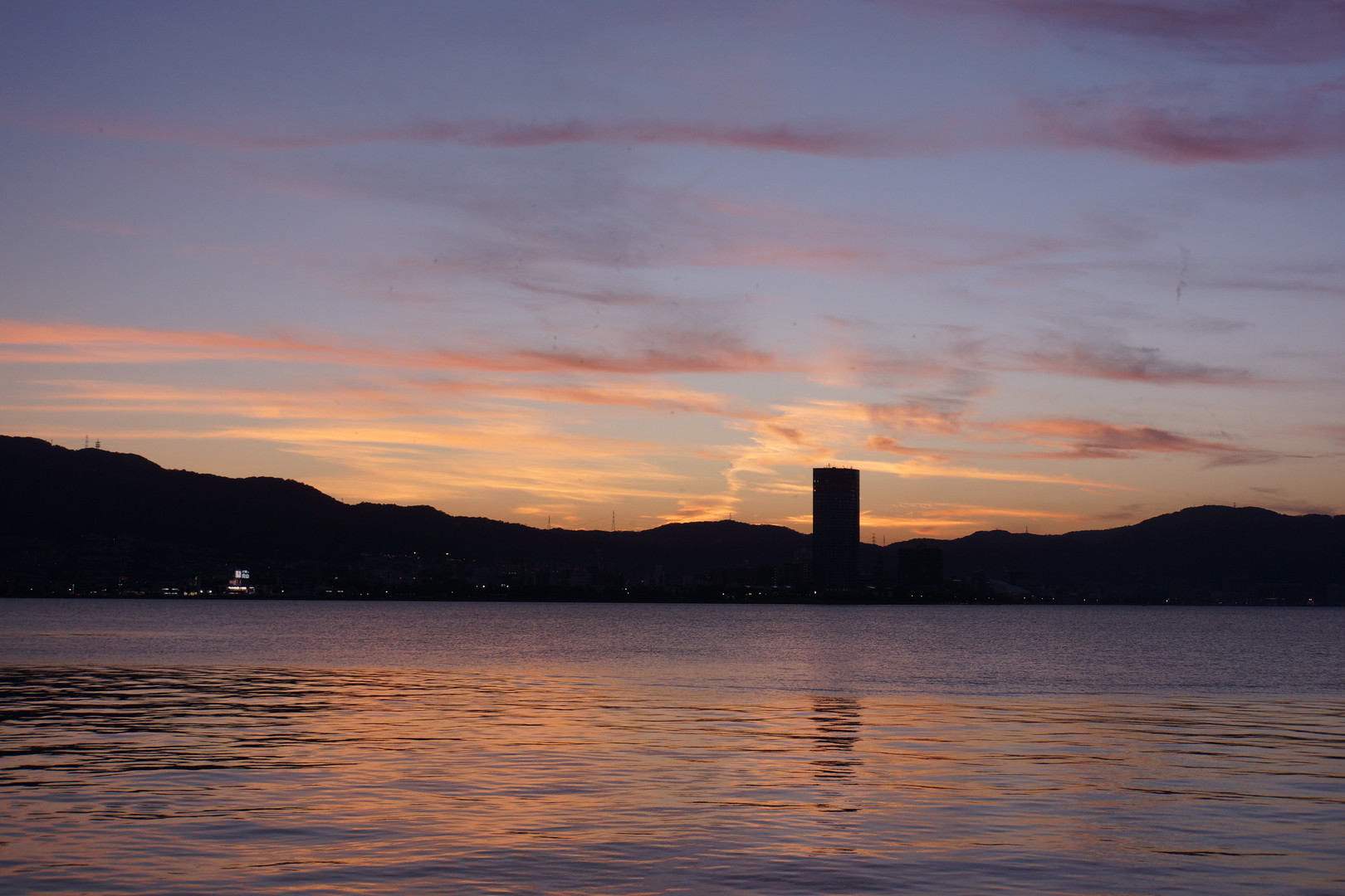 もっと焼けるかなあと期待しましたが、一面真っ赤にはなりませんでした。@琵琶湖