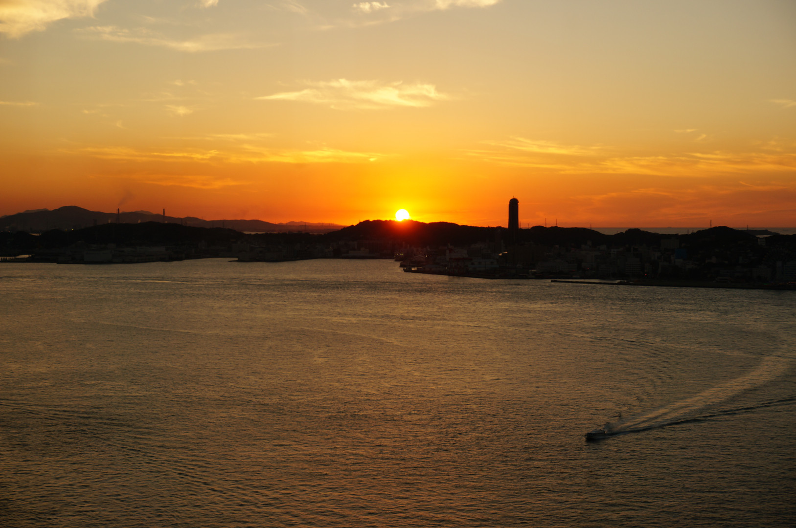 門司港レトロ展望室から撮影しました。 この日は快晴だったので、夕日もとてもきれいに見えました。
