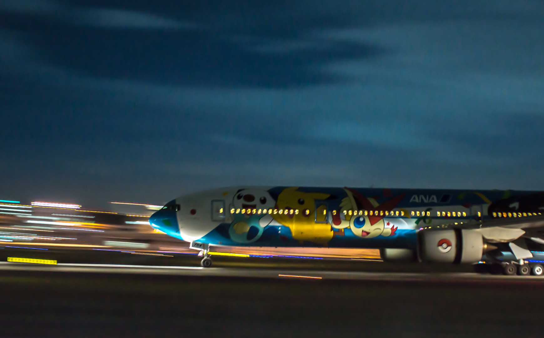いつものおなじみメンバーで、飛行機撮りに行ってきました♪ 夜の撮影は見えにくくって、ピントが合わせにくい上に何が飛んで来たかを知るのは着陸後・・・(笑) そして、見事にポケモンジェットの流し撮りに成功!! ・・・してないけれど、ここまで合ったら充分っ(*´艸`*)