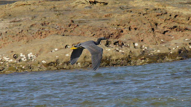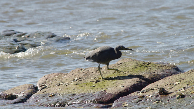 干潮の時間を狙って 近くの海岸でやっと撮影出来ました 白サギはよく見るのですが、クロサギは海に居ました