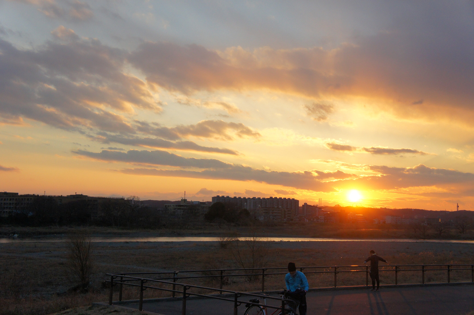 夕日を見に多摩川の土手を散策。 ランニング中の方やお散歩中の方がたくさんでした♪