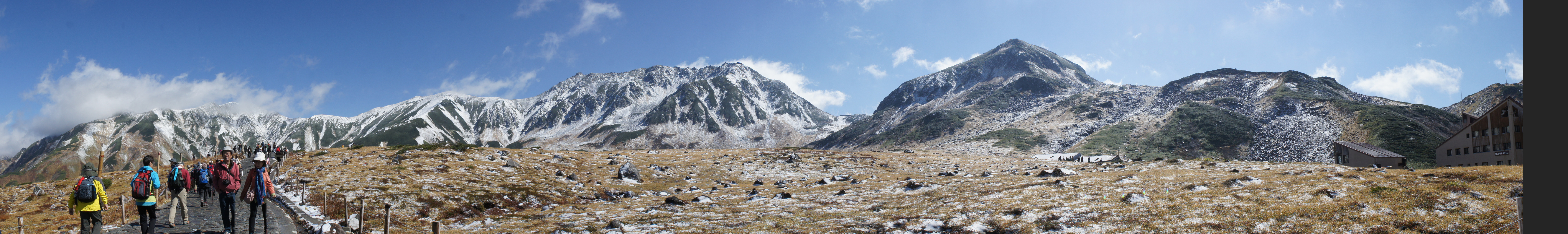 地域イベントで訪れた立山室堂。 この日の朝が初雪でした。 なんと言う偶然でしょうか! これは撮るしかありませんね。 それもパノラマでしょう!