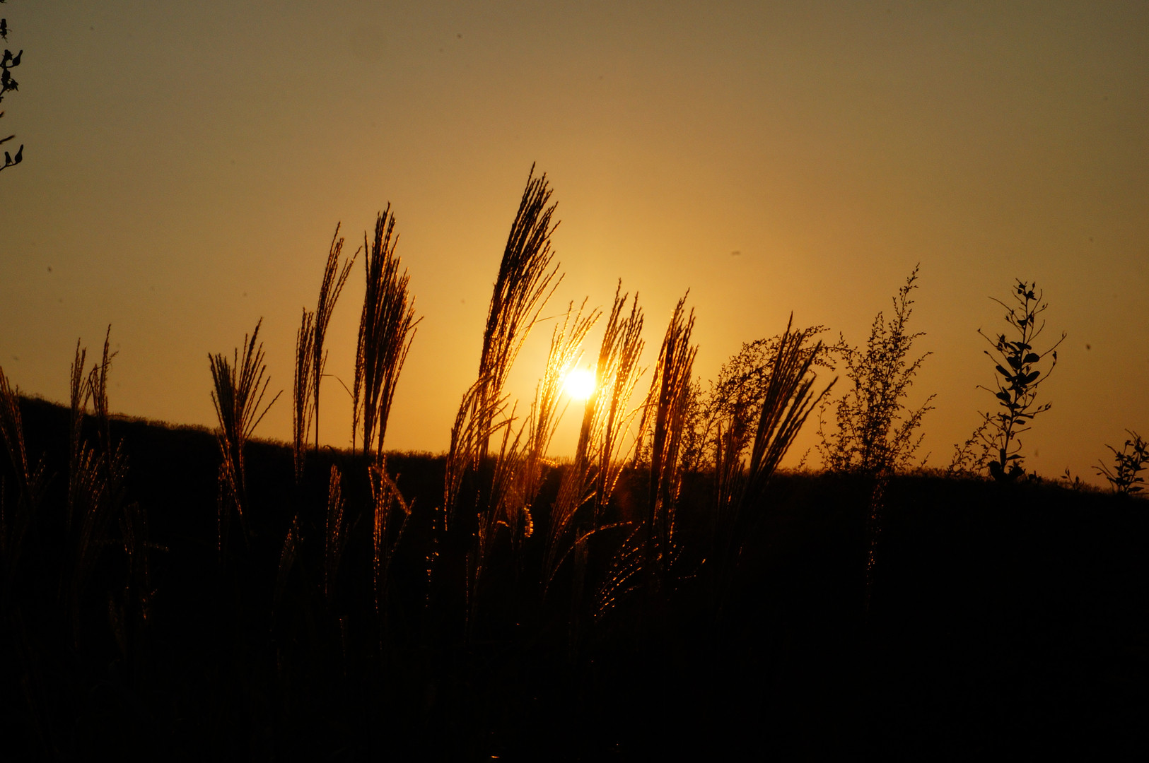 写真は朝日です。お試しでススキを収めたかったのですがススキ以外の雑草が多く時間の制約の中での撮影でした。 太陽に照らされるススキは不思議な光り方ですね、再チャレンジ頑張ります。