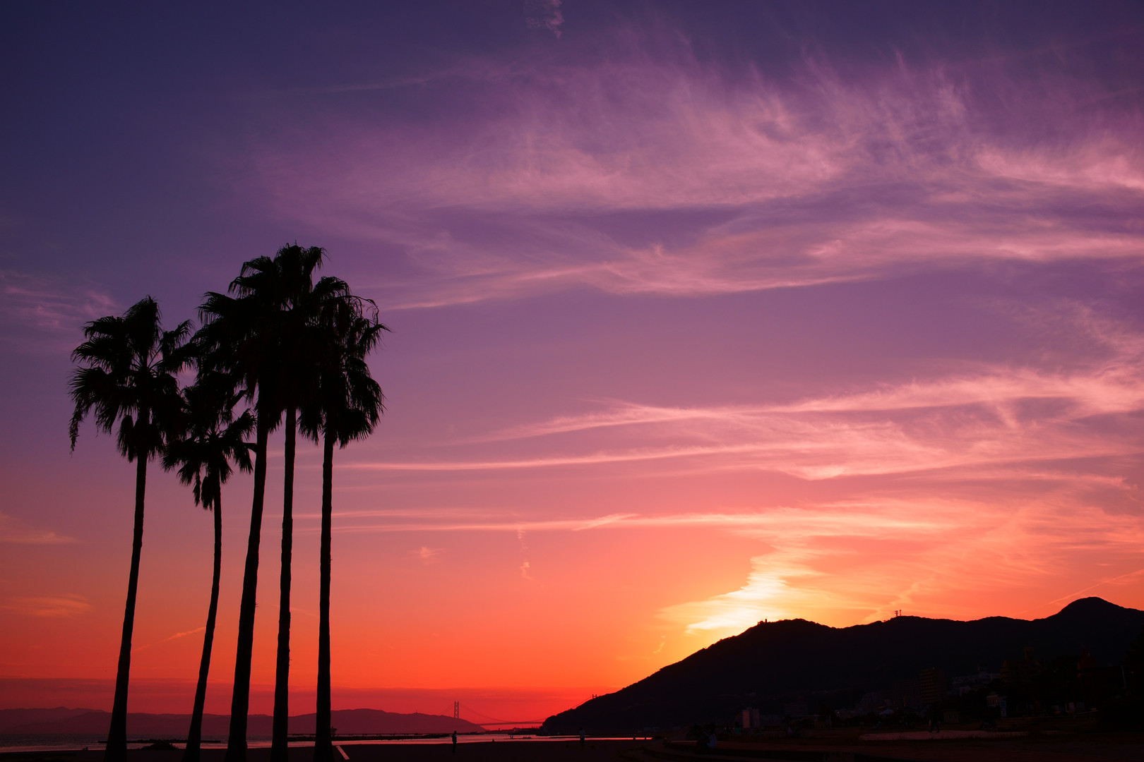 須磨海岸の夕景です。 夕空のグラデーションが美しかったです。