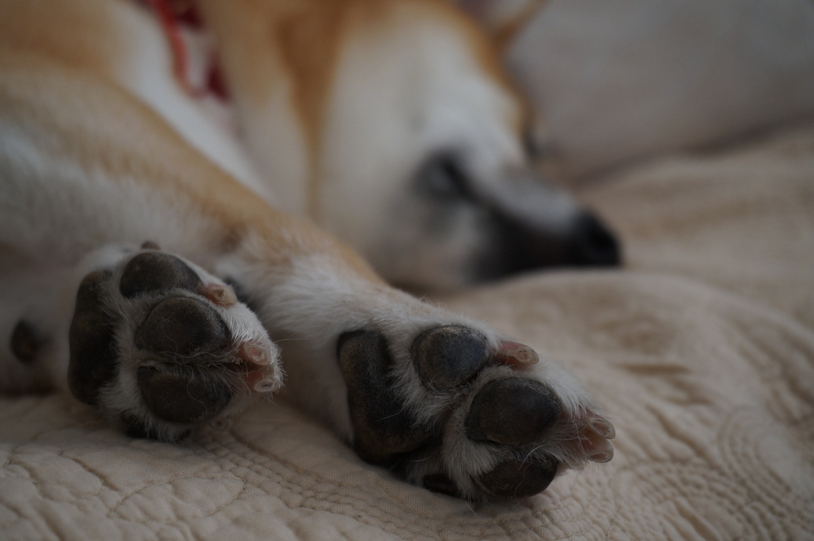 だらけて寝てるすきに、うちのワンコの肉球をパシャリ!