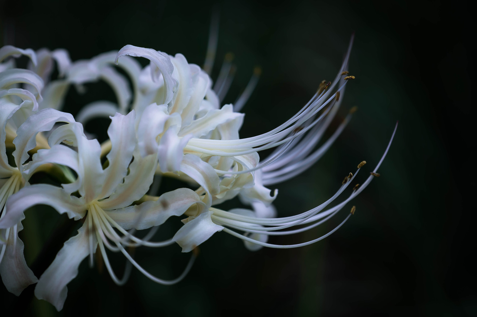 透き通った空気を感じさせる白い彼岸花の横顔。