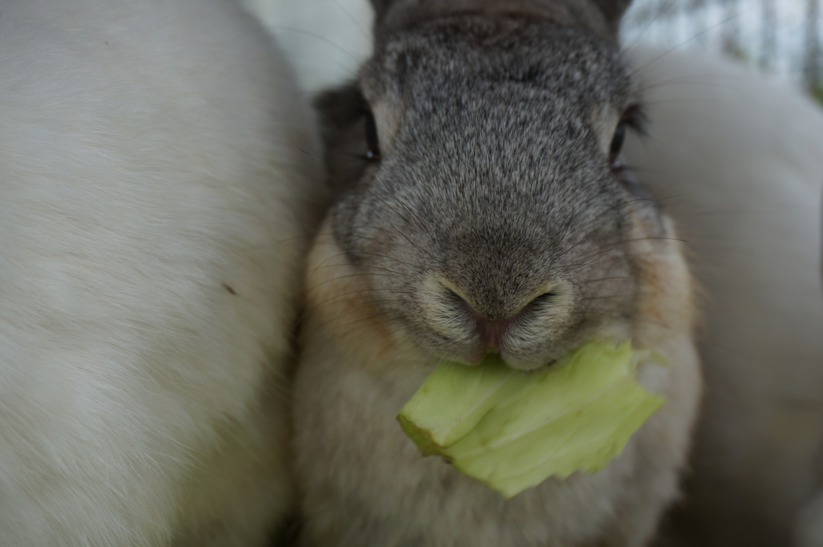 仲間のウサギに挟まれつつもカメラ意識