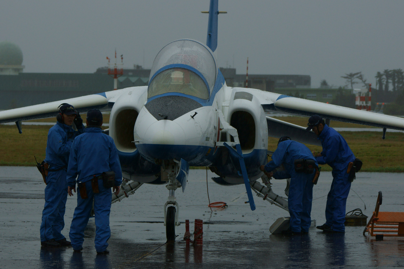 ブルーインパルスの出番が近づくにつれて雨が強く・・・。 ギリギリまで飛行する前提でいてくれましたが、天候には勝てず地上走行のみに。