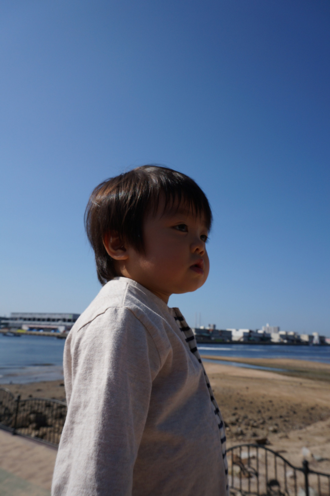 晴天の日、海までお散歩しました。 おおきな船と、ゴミ収集車をいっぱいみて、ご満悦でした。