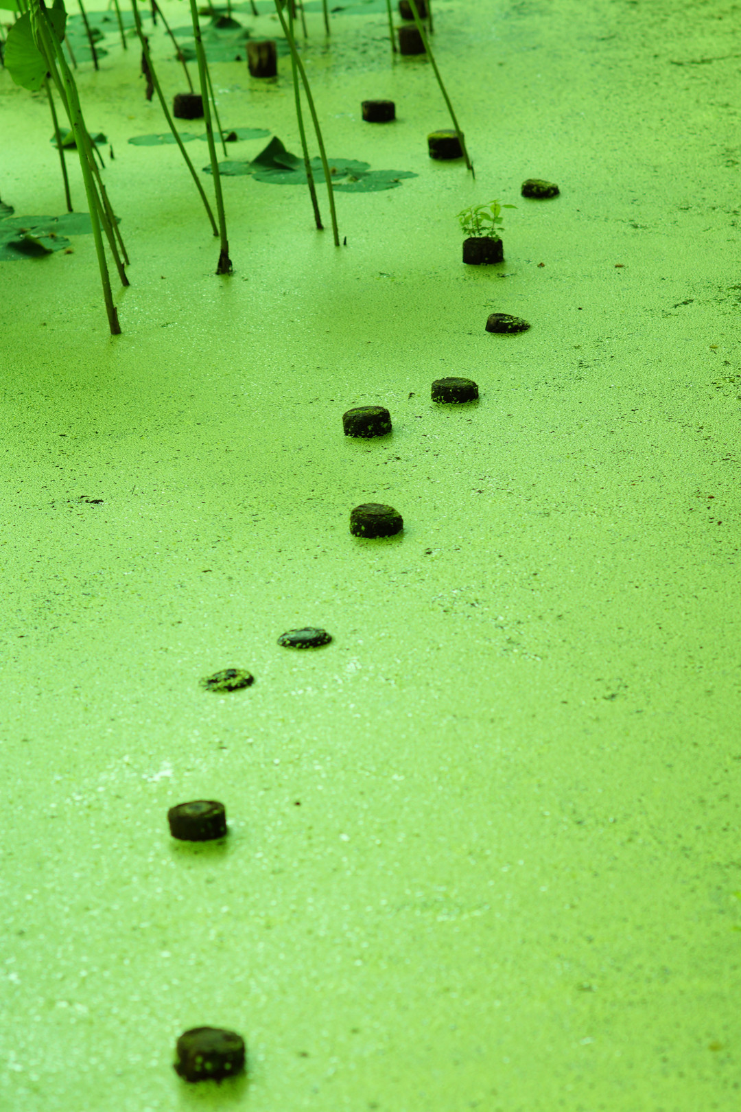 蓮苑の木杭の配置がリズミカル