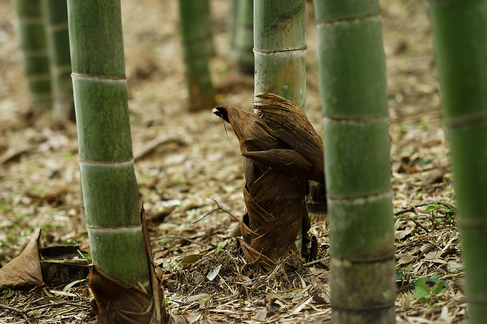 新緑だけでなく、色あせた頃の竹林は味があります。 筍は取れませんが。。