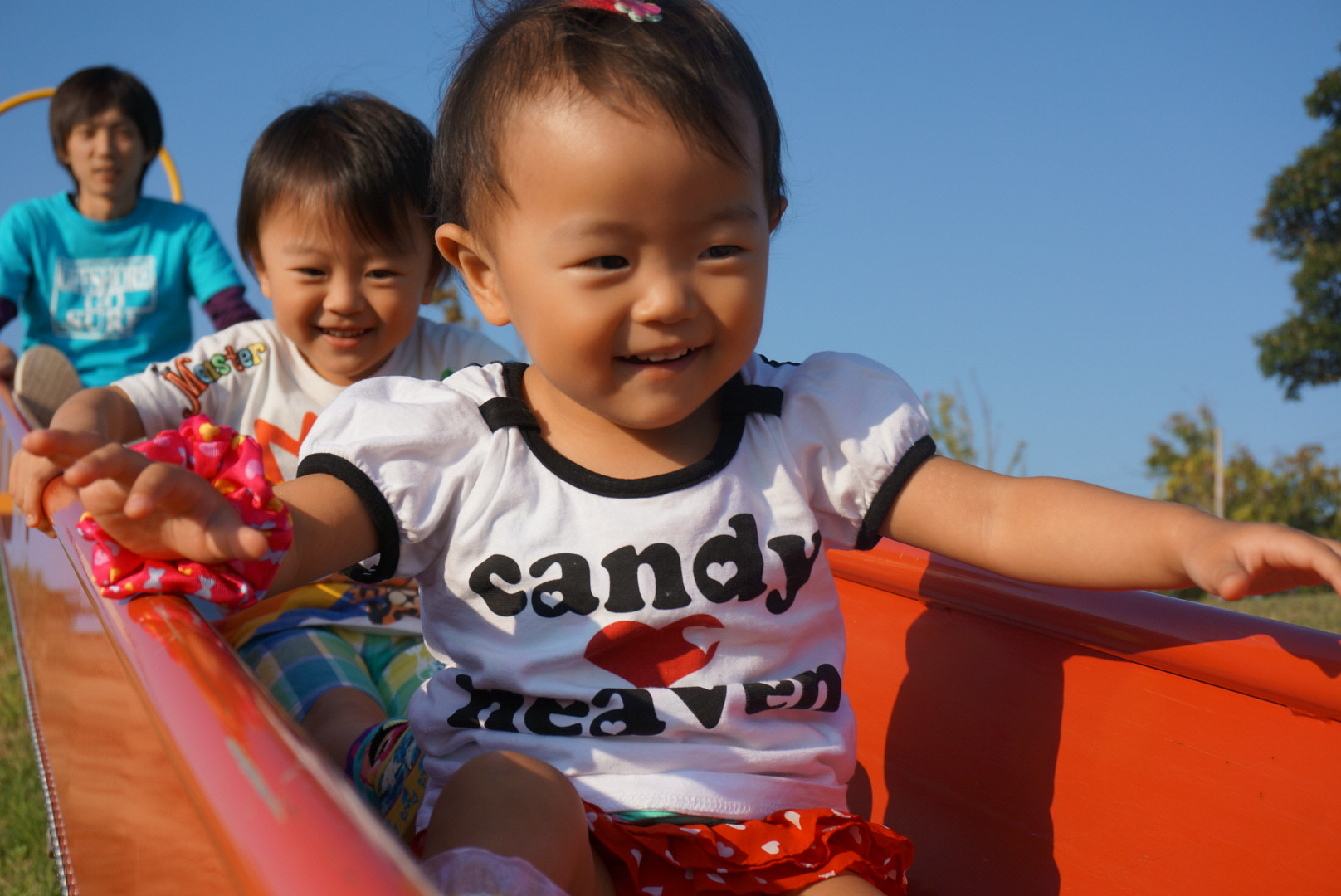 滑り台を親子で