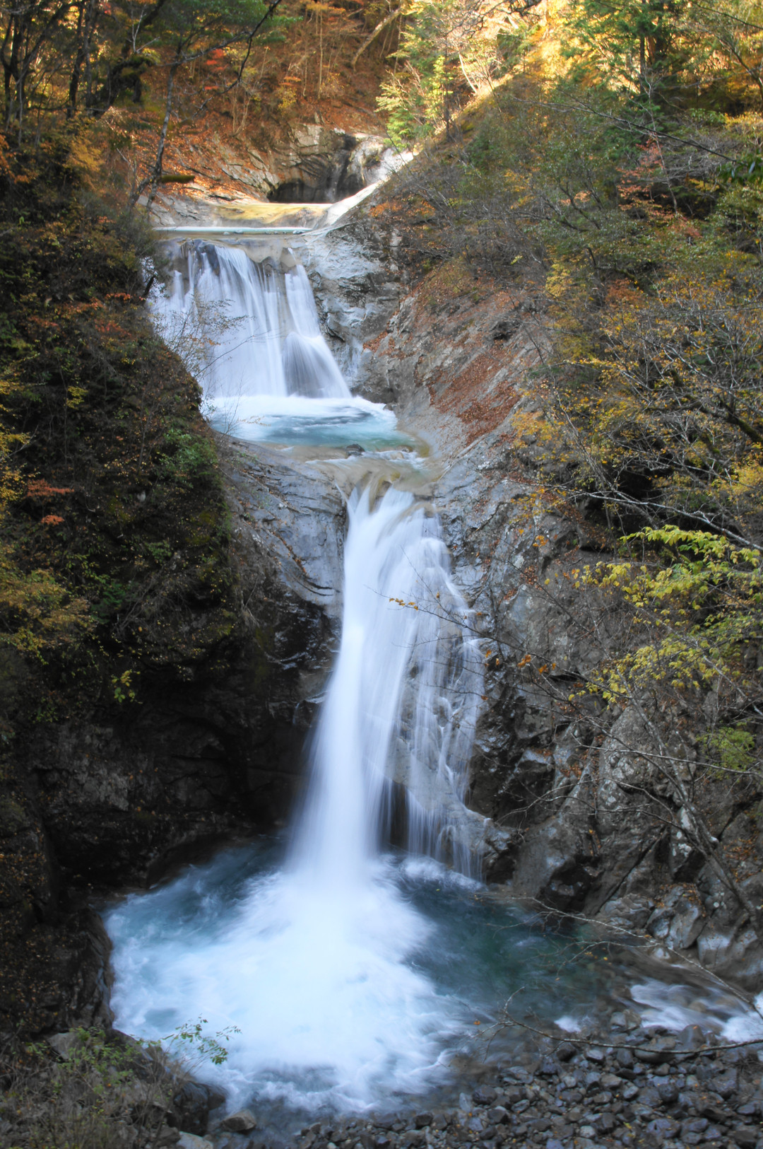 七ツ釜五段の滝です。 ハイキングコースとはいえ厳しい沢登です。 紅葉が綺麗でした。