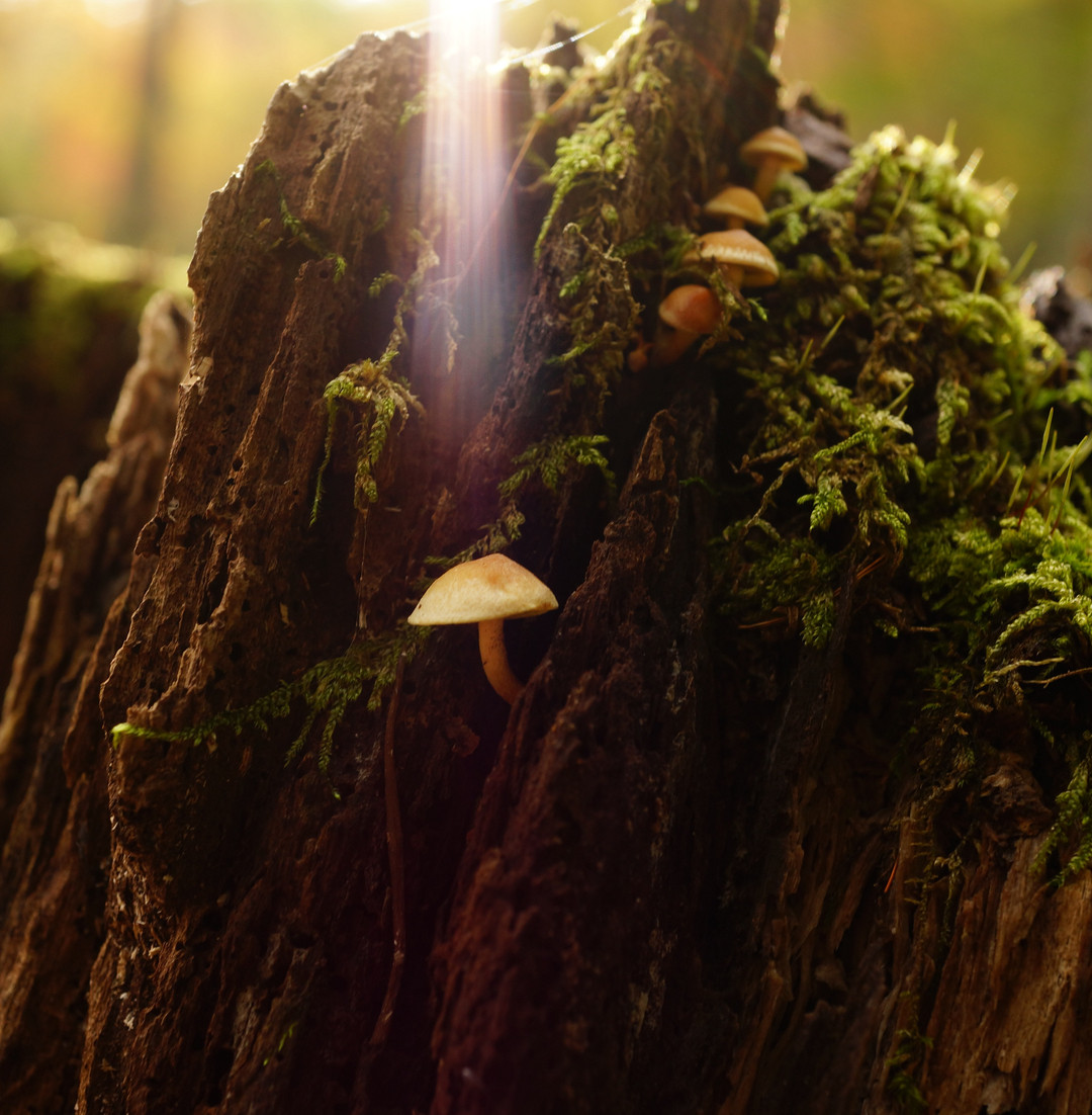 秋の山で紅葉を楽しんでいると、きのこがたくさん生えた木を見つけたので撮っていると、ちょうど雲の隙間から光が入って、まるできのこが降りてきたかのようだったので撮りました。一瞬の出来事だったのでピン甘ですが、撮れてよかったです^^