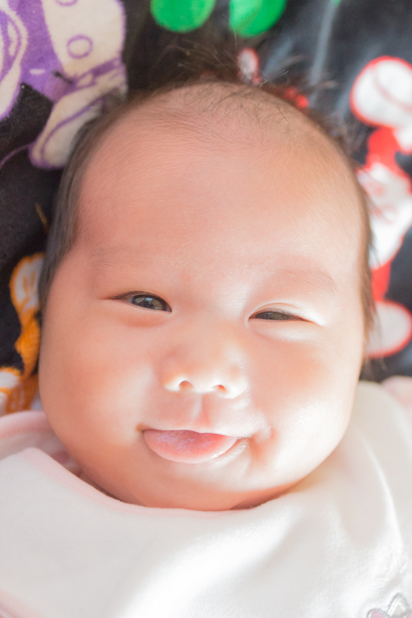 4人目の子が先日産まれました。 良い表情を狙ってカメラ構えていたら こんな顔してくれました!