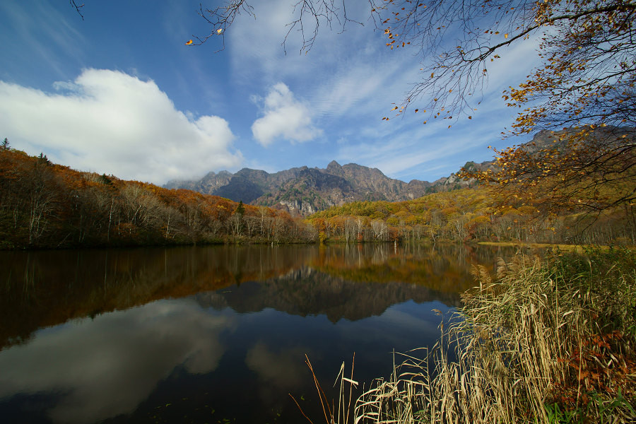 紅葉した鏡池から西岳が見えます。 クライマーが上る険しい岩山ですが、チャレンジしてみたい。