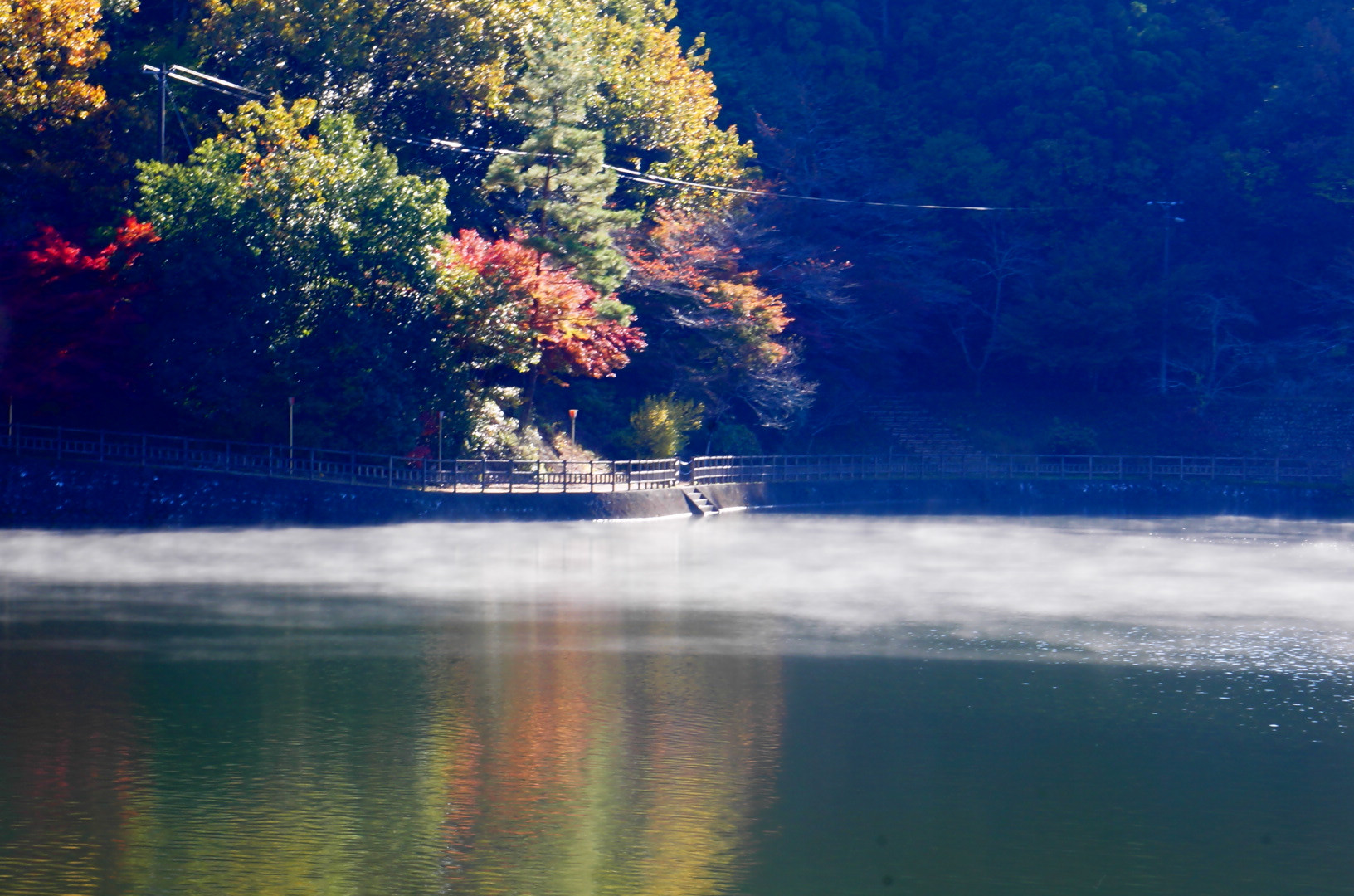 岐阜伊自良湖にて。 釣りで有名で色々釣れるそう。ワカサギもかな? 朝早めの撮影の為もやもやっと水面から湯気が(☆。☆)