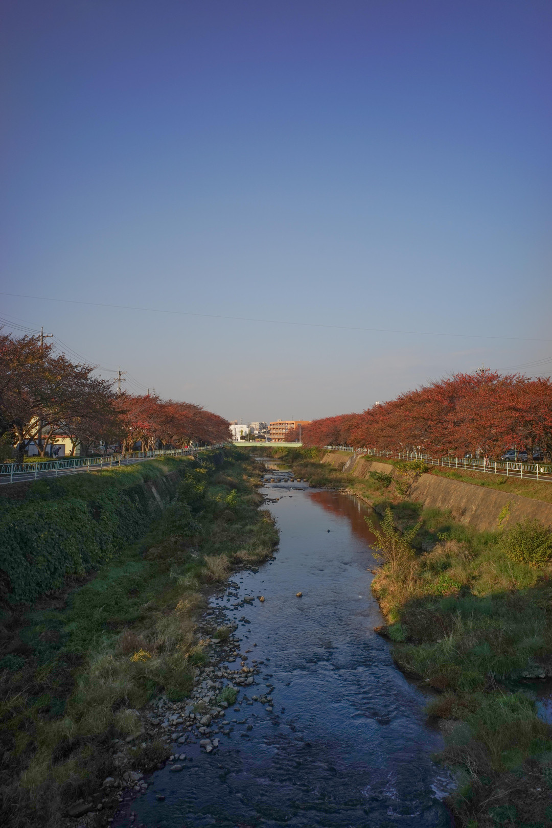 春には淡いピンクの桜の花で川岸を埋め尽くし、秋にはこんな大人色で季節を表してくれます。 同じ景色も違うものに変わり、水の流れの様に時間の流れを感じます。 CONTAX (G) 28mm