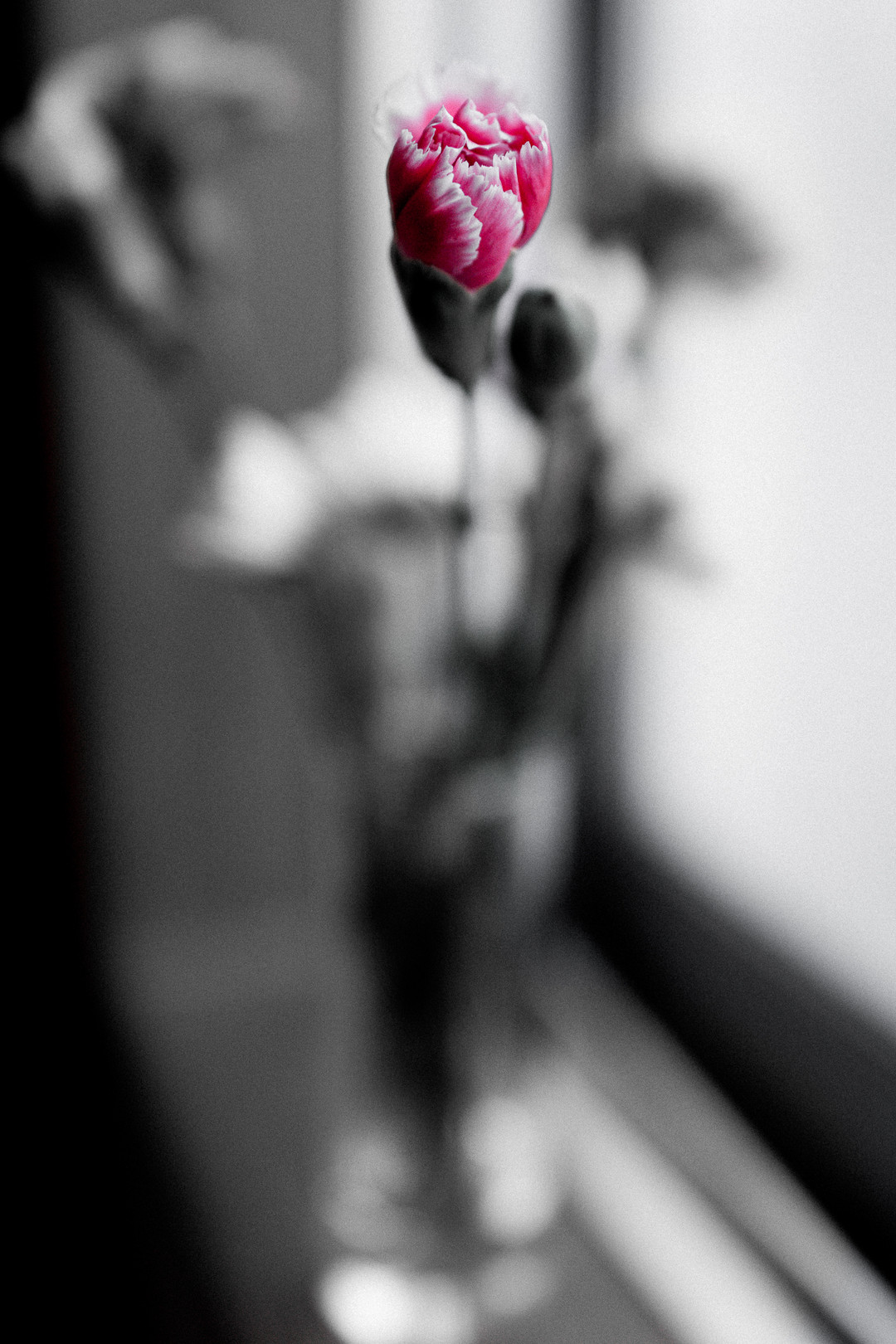 季節外れのカーネーション、花束の中に埋もれていました。 ワンポイントカラーでもよかったのですが「この蕾だけ!」目立たせたかったので後処理バンバン(笑)加工しました。 賛否ありますが、解放での画像の緩み方、私は大好物です!!