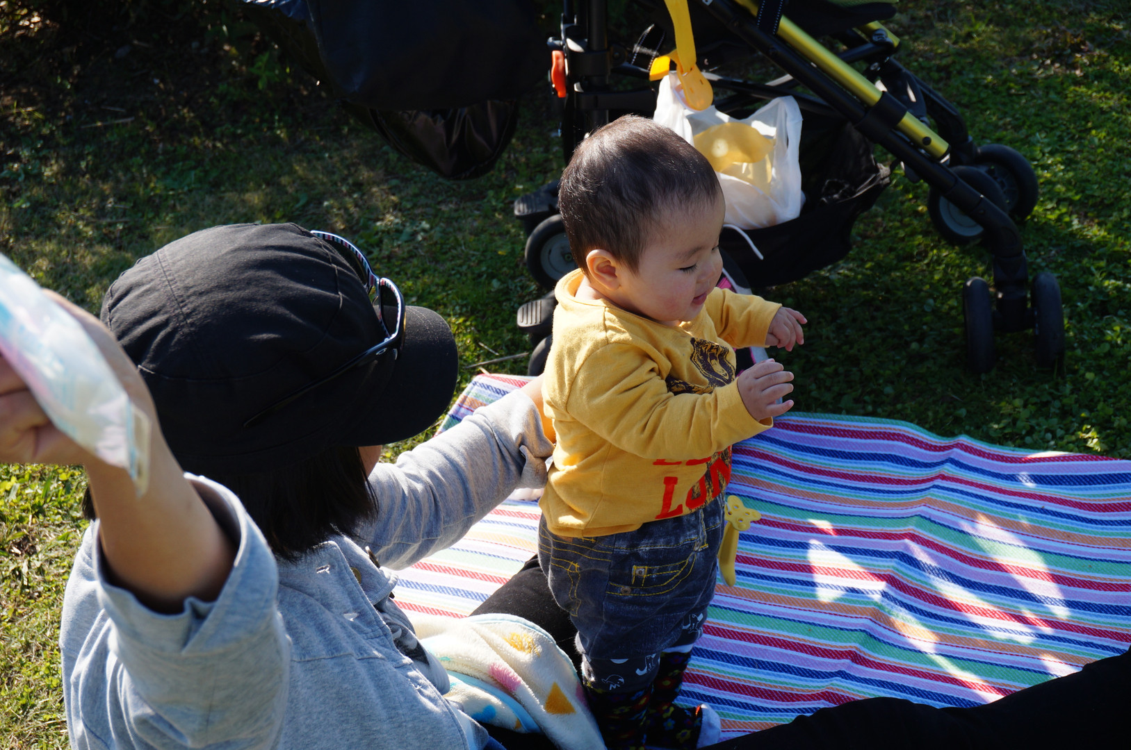 ベビーカーの中から