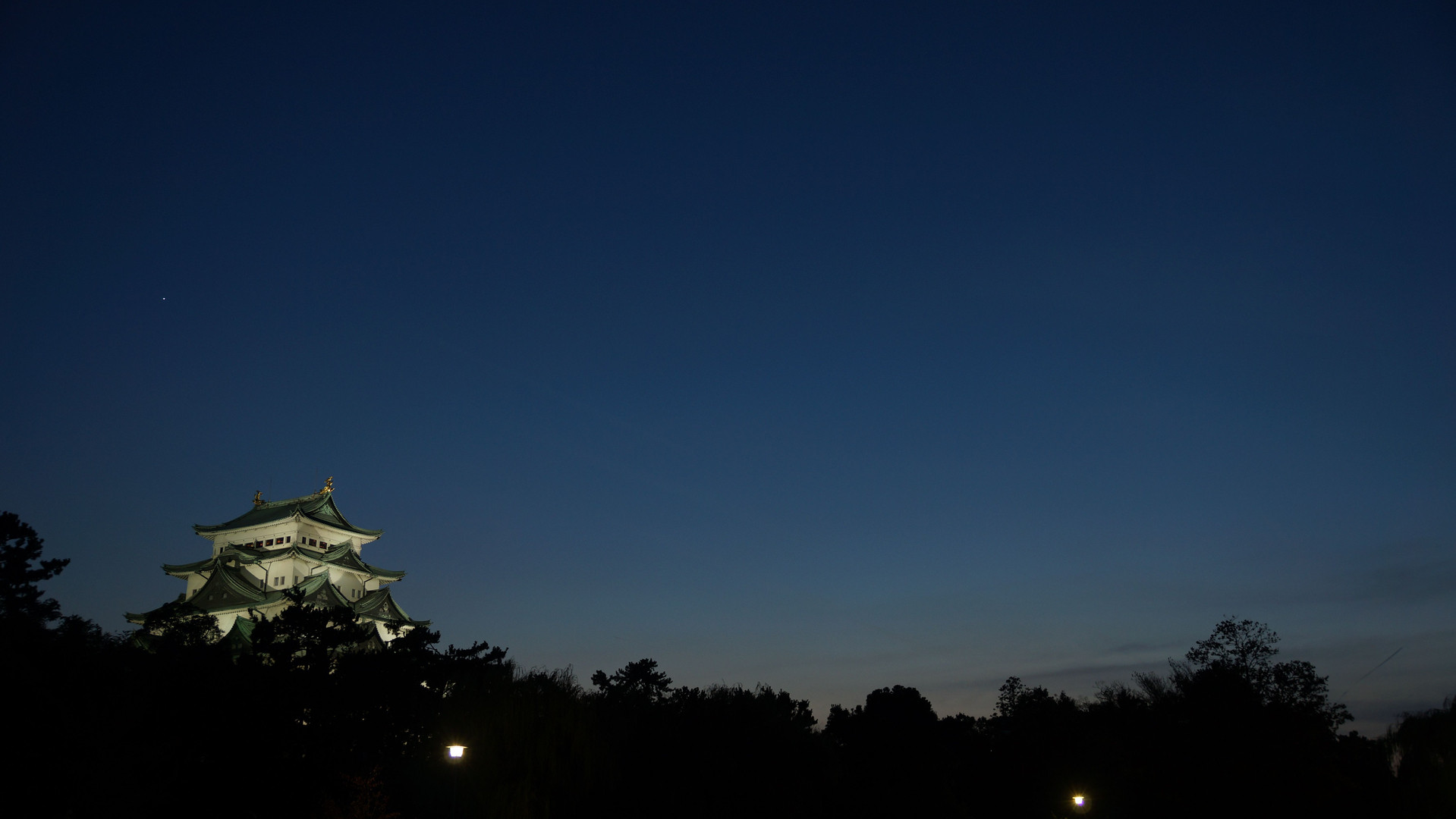 日没後のライトアップされた名古屋城