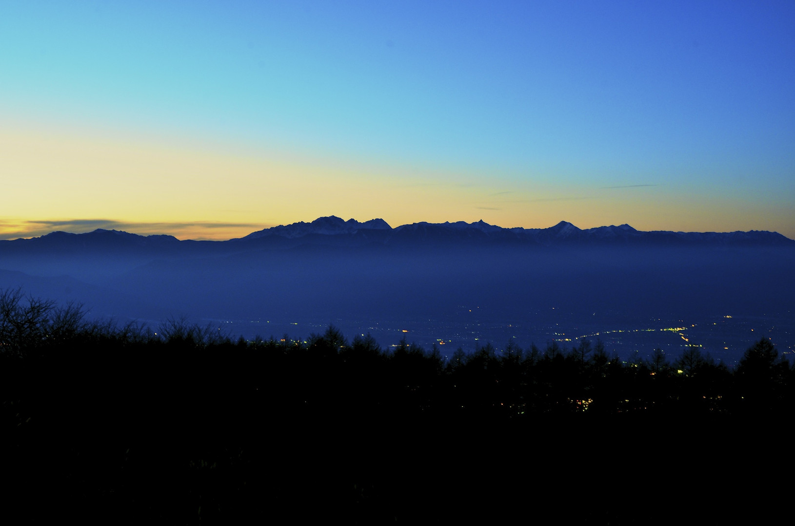 日没後30分 北アルプスを背景に一日の終わり。