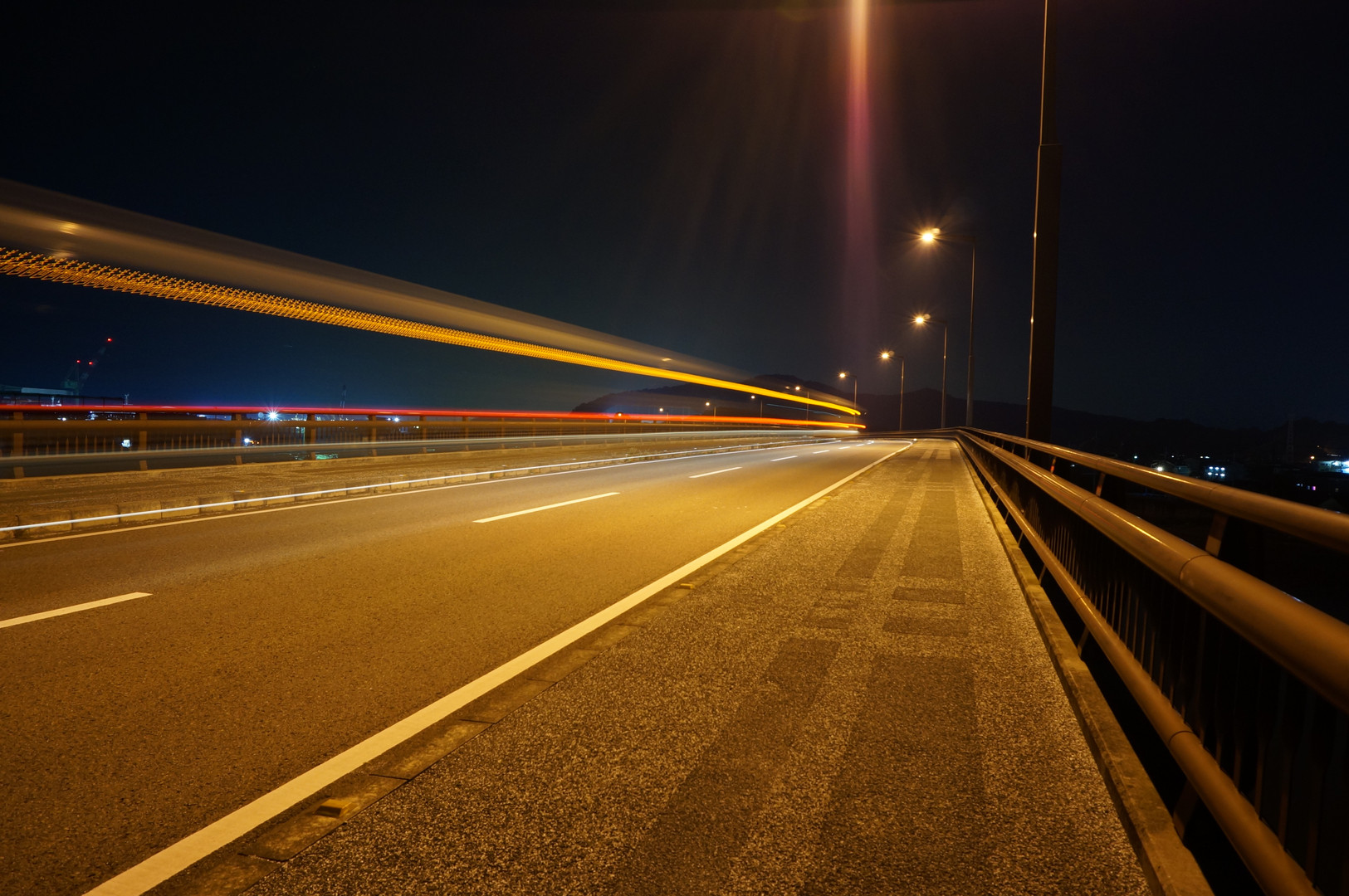 橋上の路肩にて光跡を狙ってみました。 この高さのある光跡…実はバスなんです!!