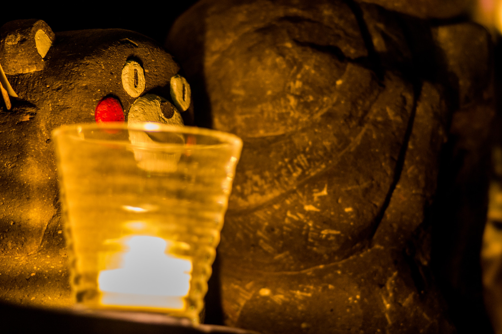 ロウソクの光に照らされるくまモン