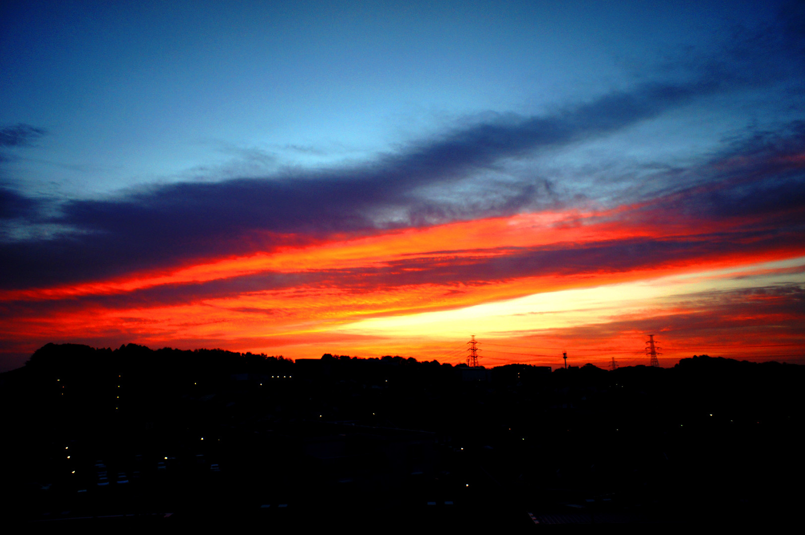 昨日の朝焼けです。カーテンを開けたら目に飛び込んできました。撮っている間にも刻々と色、明るさが変化していきます。