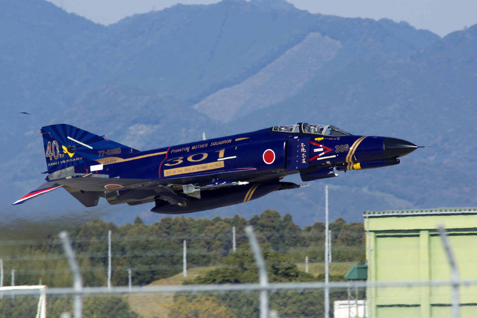 ベタ低あがりの不撓不屈F4phantom 40周年記念塗装機。この後、ハイレートクライムしましたが、この場所からでは遠過ぎて絵になりません・・・。