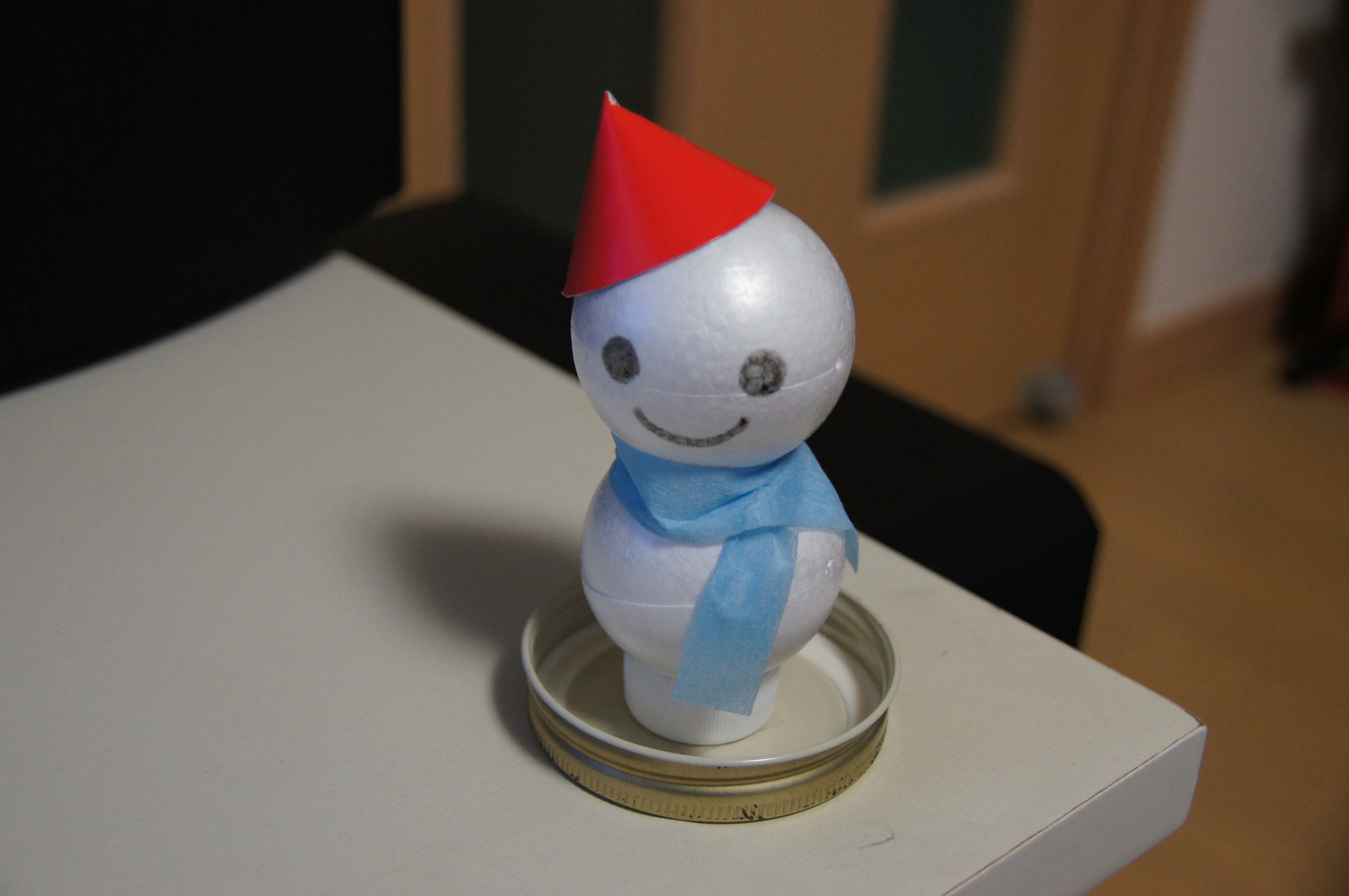 保育士のうちの奥さんがクリスマス会に備えて小さい雪だるまを作っていました。 かわいかったのでパチリ(^^)