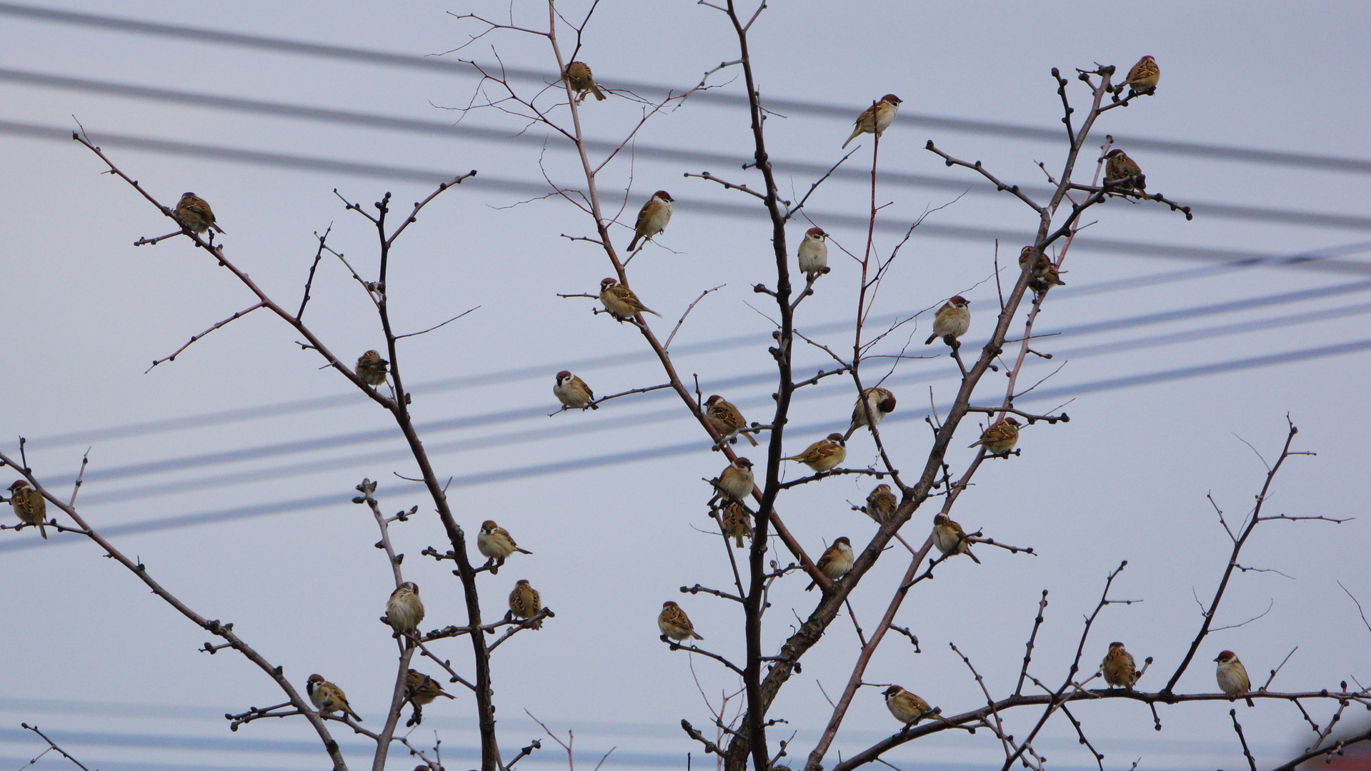 何故かこの木に集まるスズメ達 ピーチク 賑やかな朝の会議です