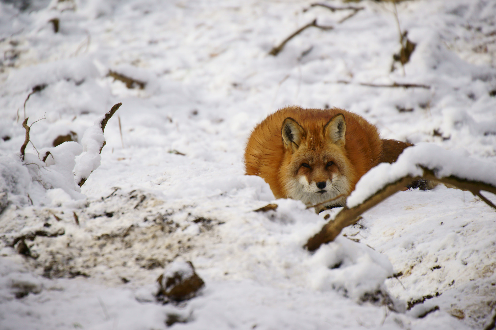 冬毛のキツネさん。