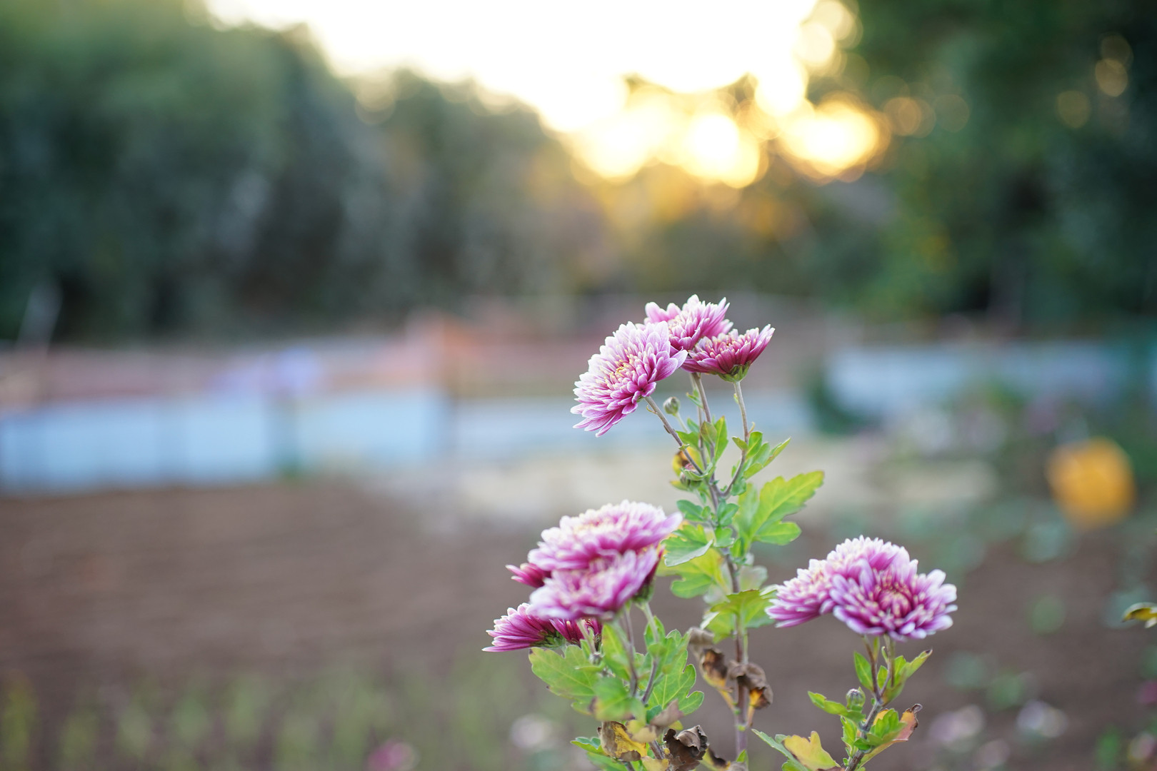 夕陽に照らされた冬の菊を撮影しました。 α7 いいカメラです レンズはSIGMA 50mm F2.8 MACROです。