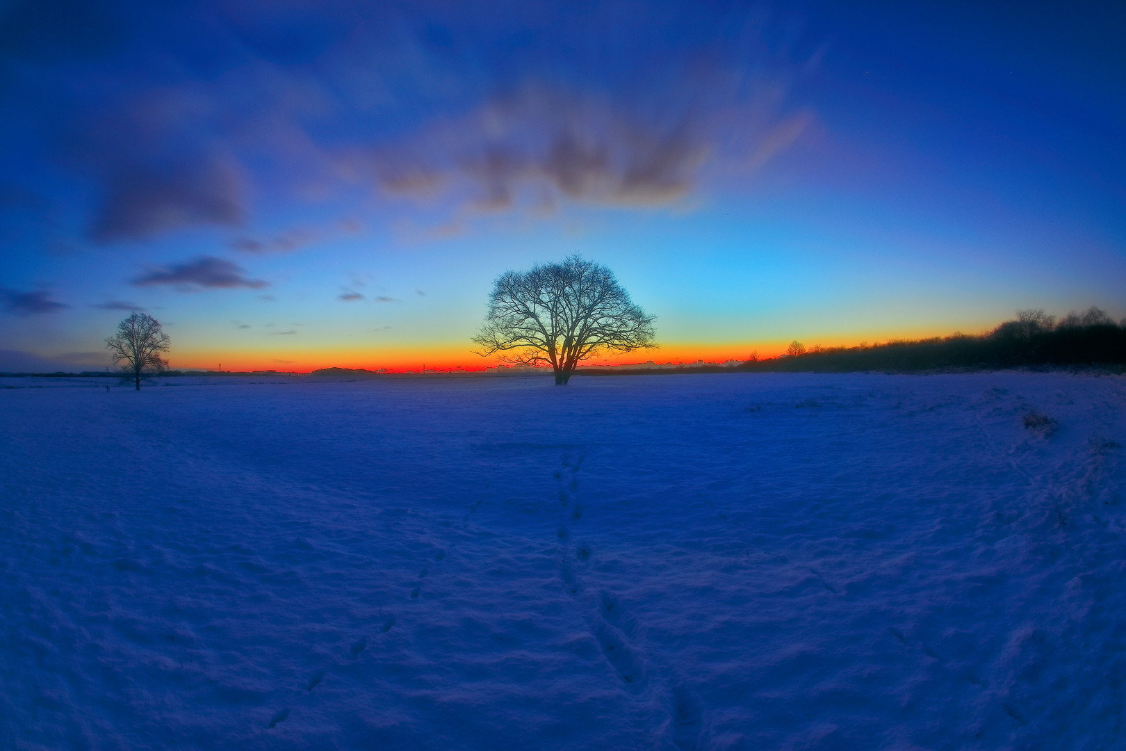 もっと前方で星空を撮っていたのですが、気がつけば後方には日の出を撮りに来た方々が・・・(^^ゞ ちなみに足跡は私のじゃなく、多分キタキツネか何か小動物のものです。