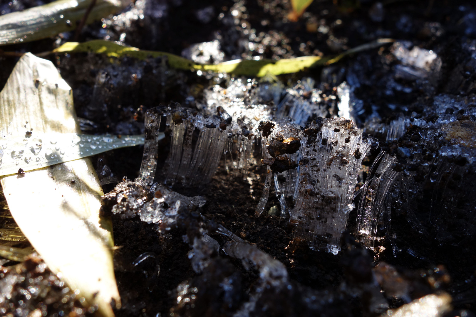 雨上がりの早朝、土筆の様な霜柱がたくさん。