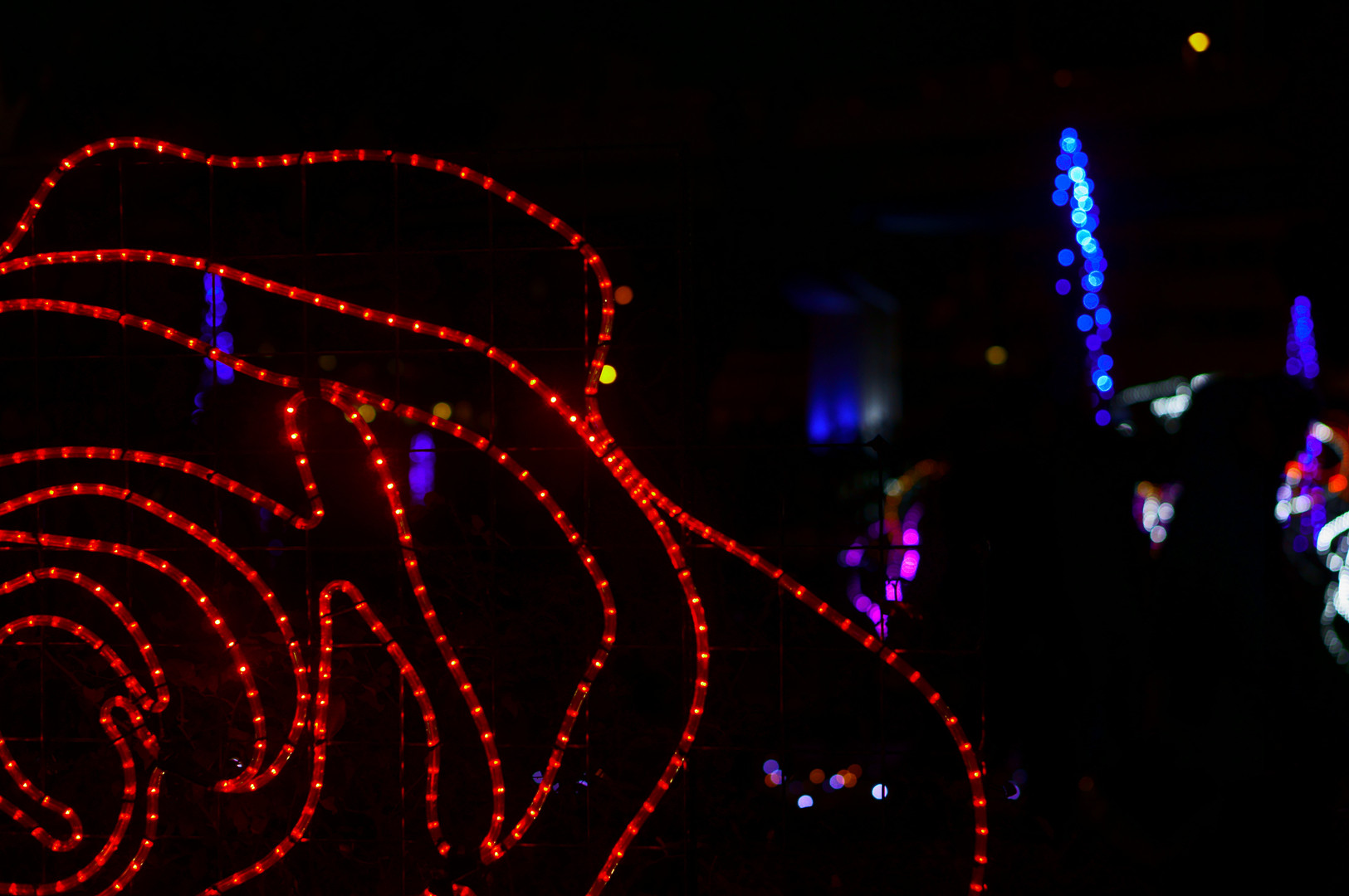 バラ園に、光るバラが。