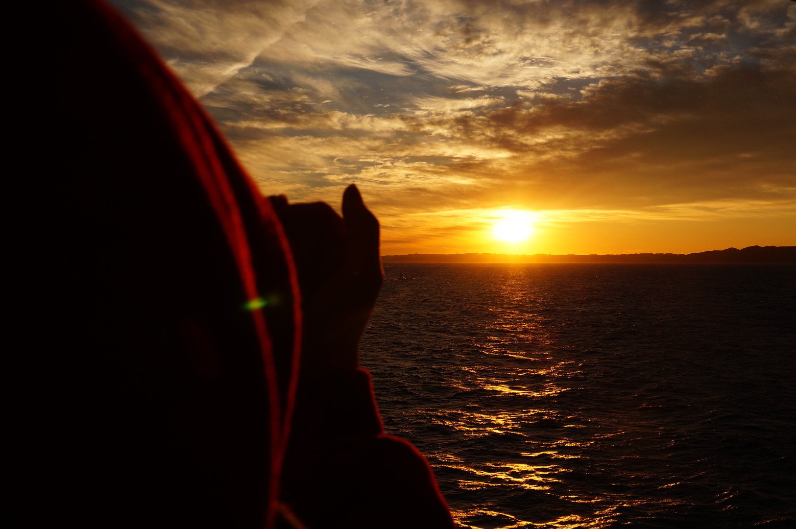 東南アジアから日本へ船で帰ってくる途中の朝日です。 おそらく関東付近の海だと思われます。