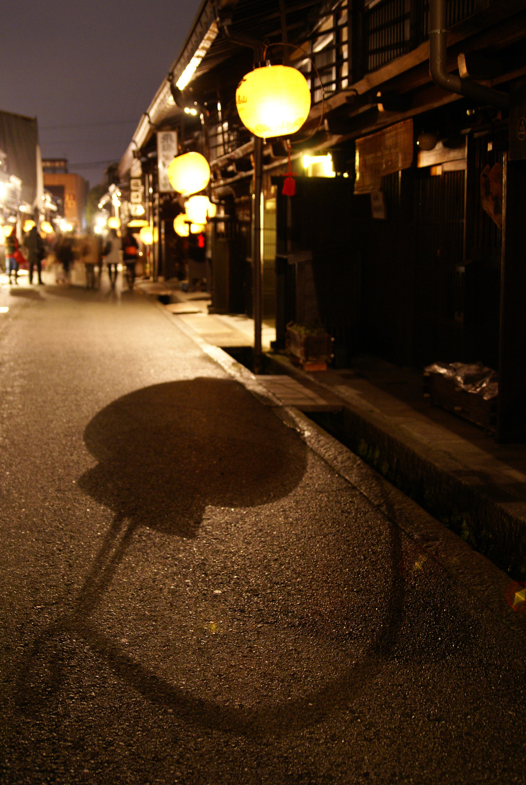 提灯だけでは暗いため電球も点いています。 提灯は暗いため影が出来ていました。 面白い感じだったので撮ってみました。