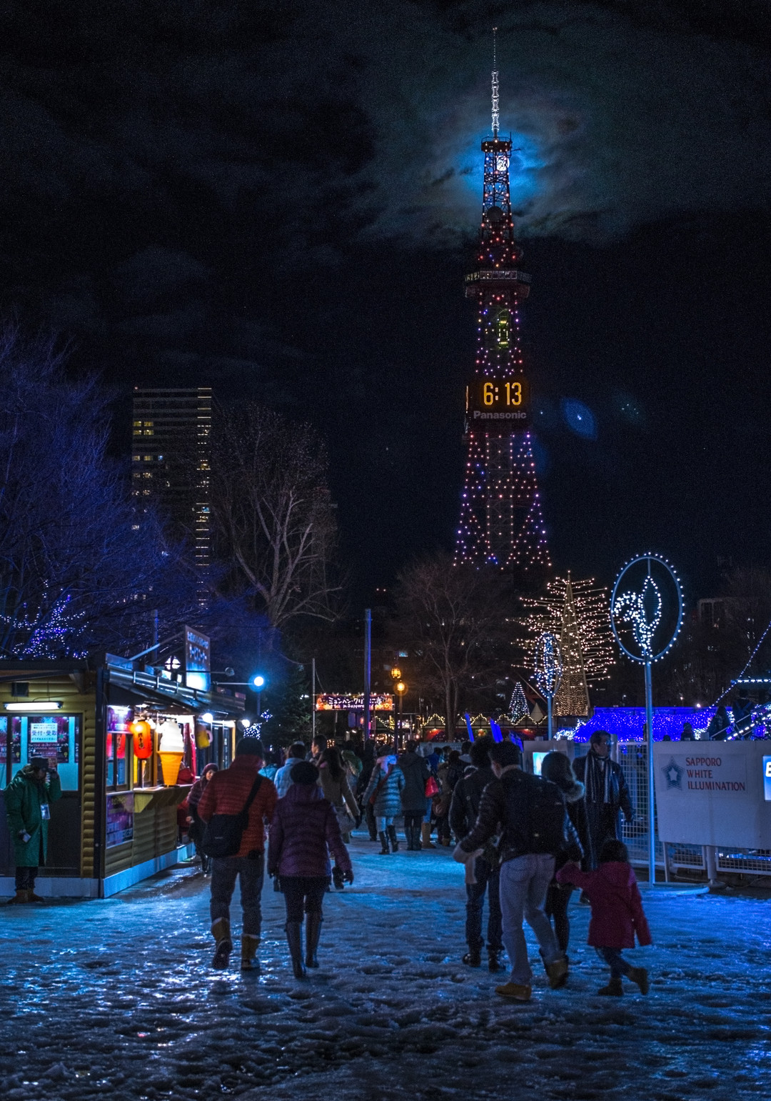テレビ塔です。イルミネーションがキレイでした-! みんなアベック! 月が面白いところにありましたー