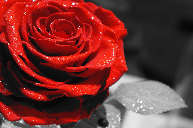 カラー抽出フィルターを使用しました。 バラに着いてるキラキラはダイヤモンドだとか。