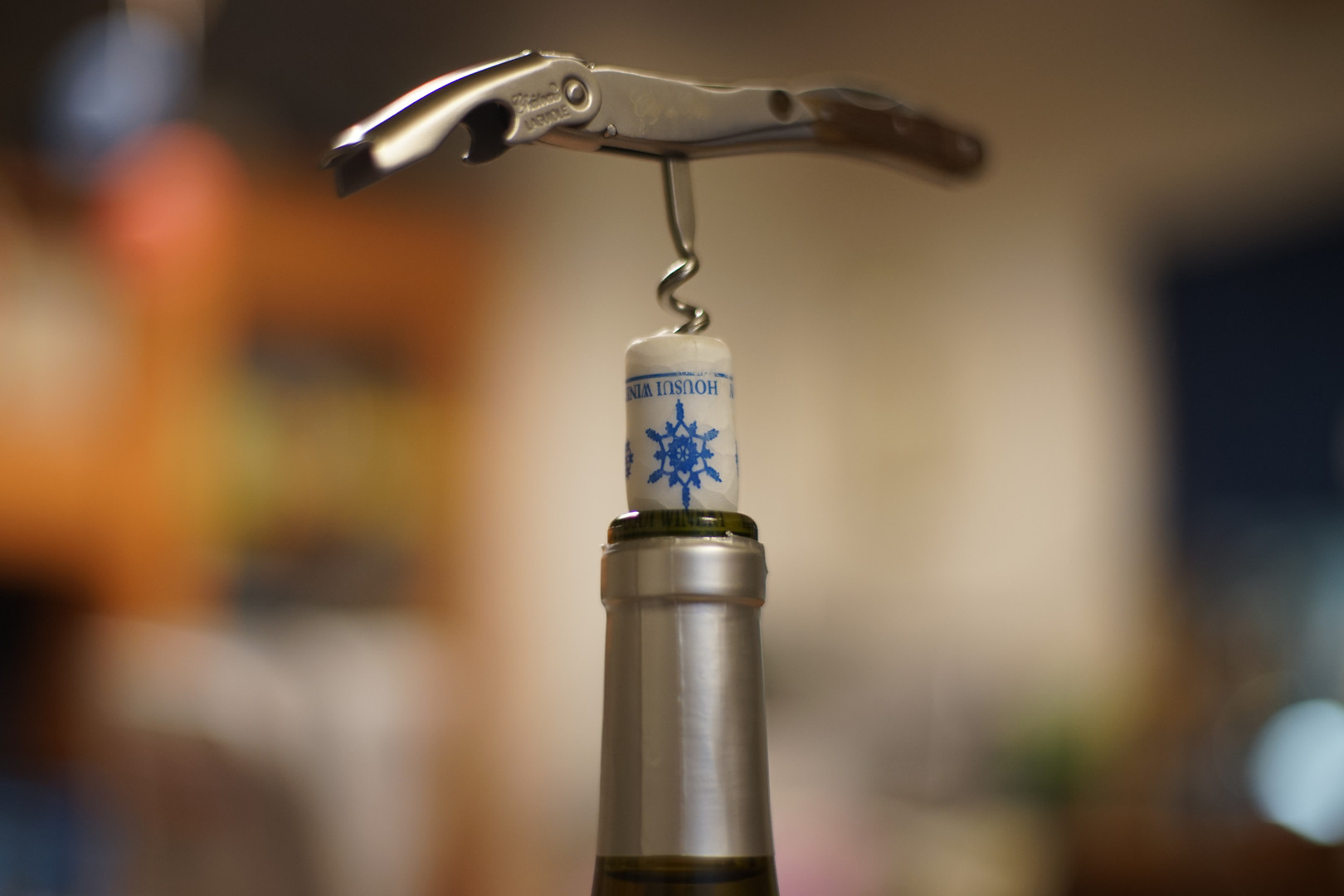 ワインをあけたらコルクに雪の結晶の絵が。さすが北海道のワイン^^