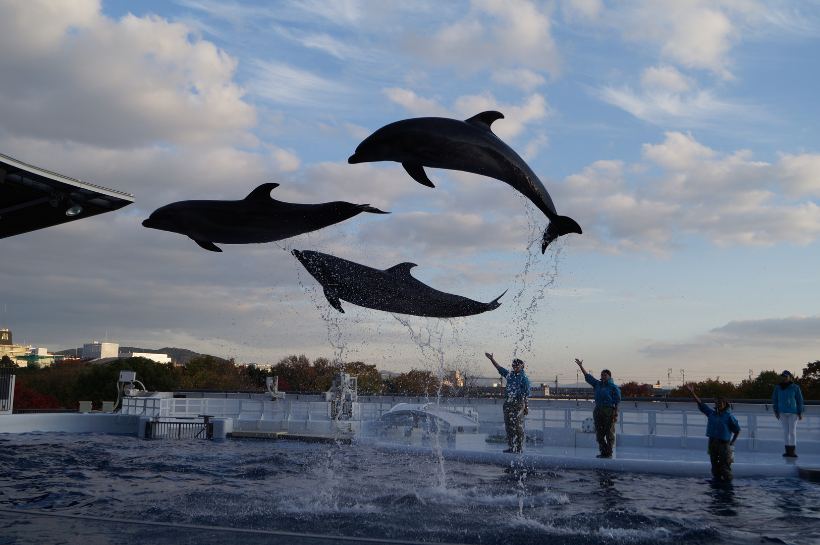 京都水族館のイルカの舞。 イルカもショーが慣れてきましたね。