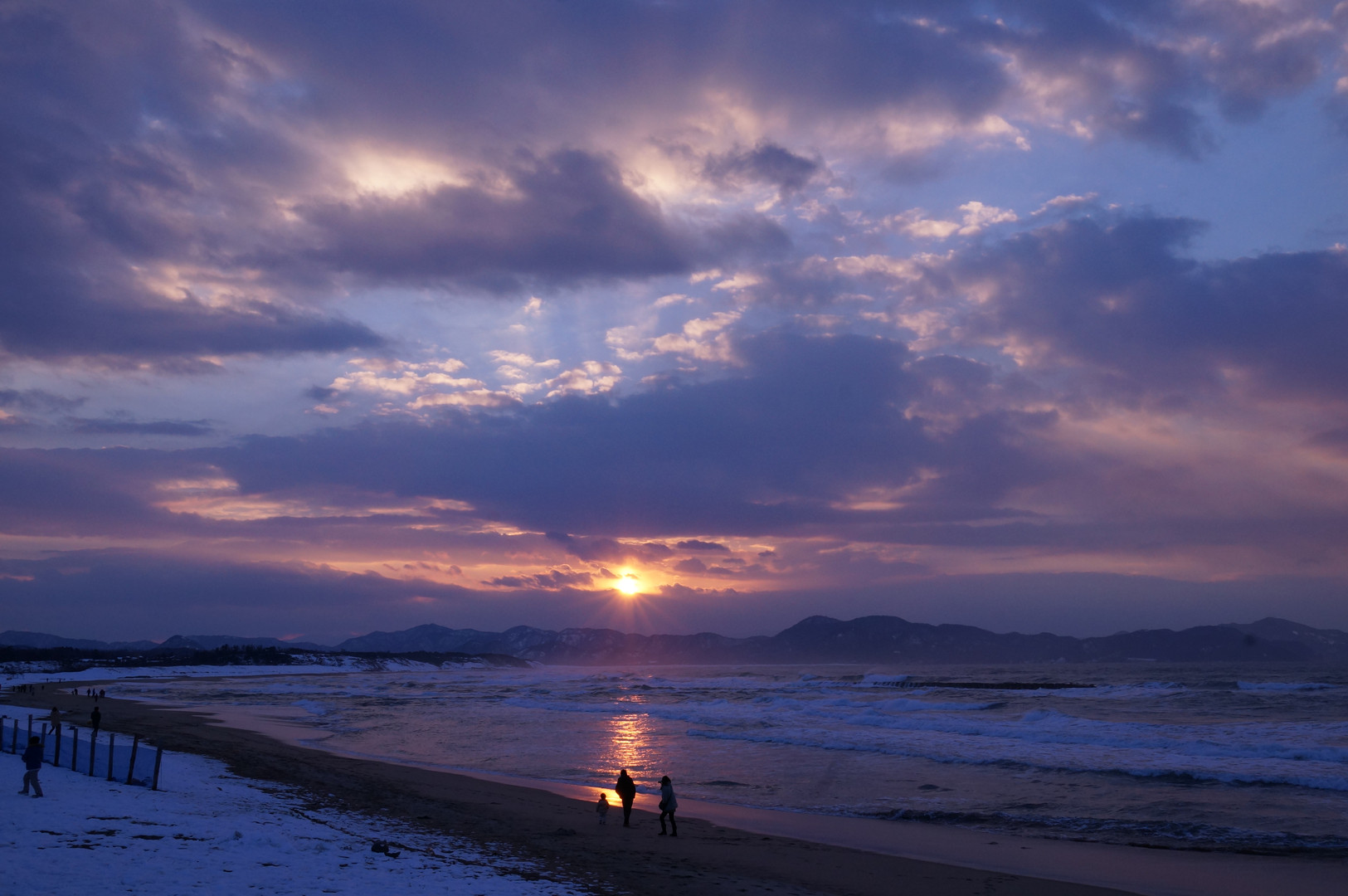 去年の大みそかに日本海側に旅行に行ってきました。 カニ料理をお腹いっぱい食べました。 旅館の側がすぐ日本海で素敵な夕日を見ることができました。